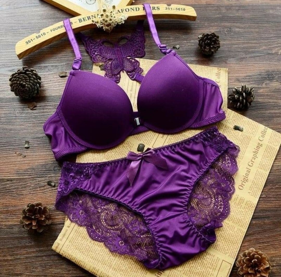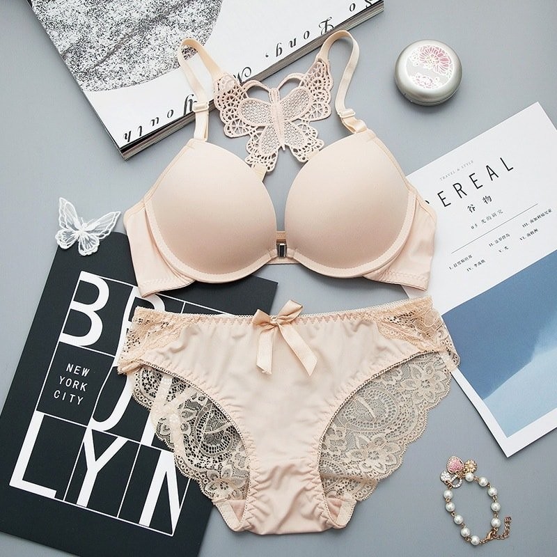Front Closure Butterfly Design Push Up Bra Set