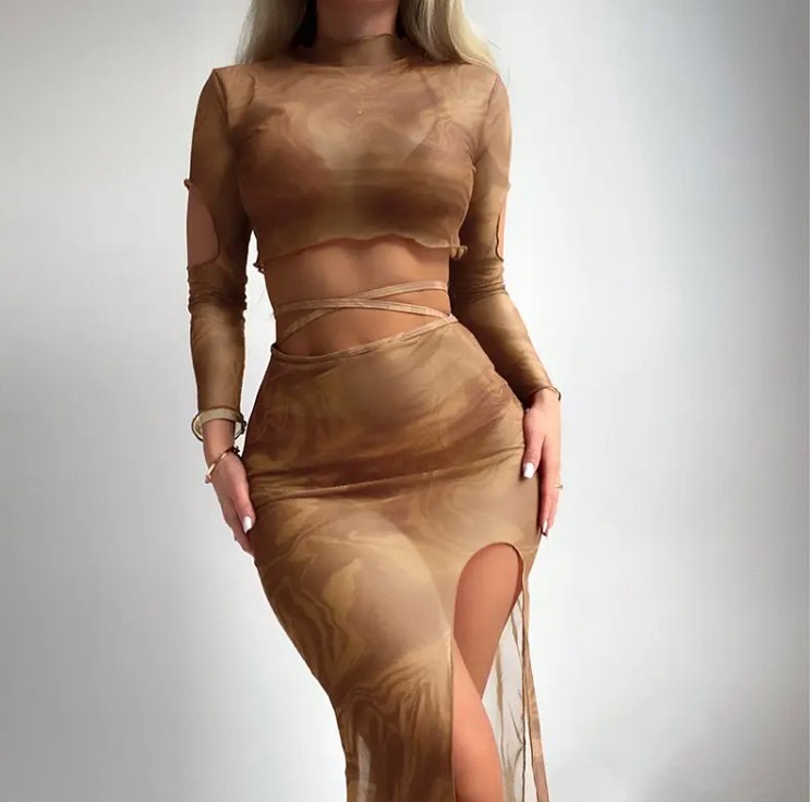 Lace European and American Long-Sleeved Blouse Sexy Split Bikini Four-Piece Suit