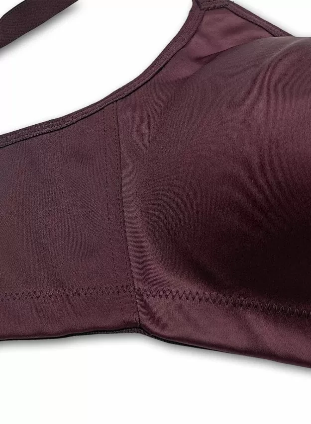 front - satin | skin side - cotton | non padded | non wired | seamless | molded | t-shirt bra | full coverage | 4x4 back hook | fixed straps | super fit