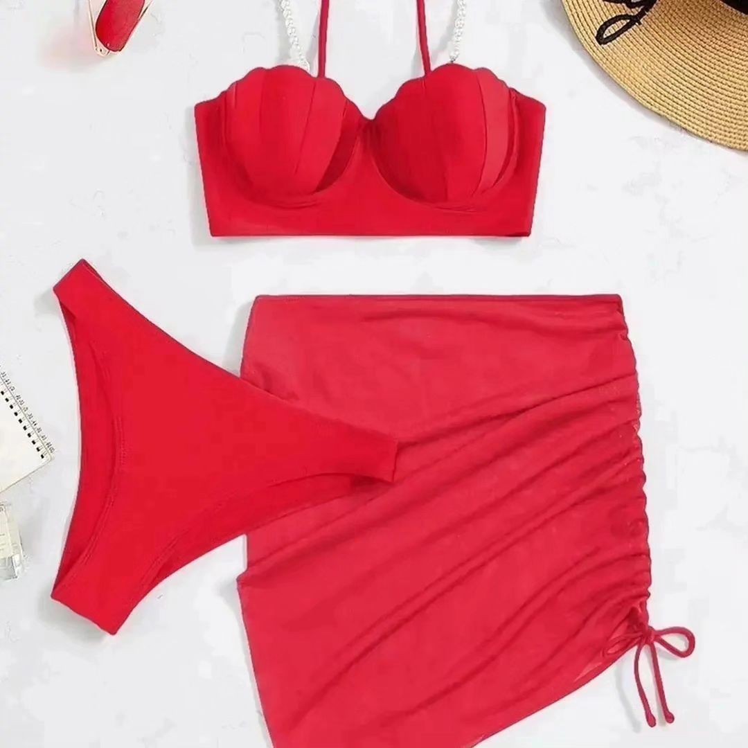 Sexy Push up Bikinis Three Piece Swimsuit with Skirt