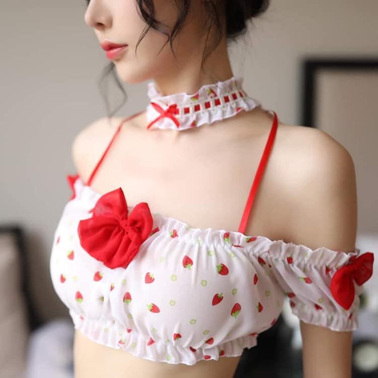 Strawberry Printing Sling Set Women Strappy Sexy Lingerie
