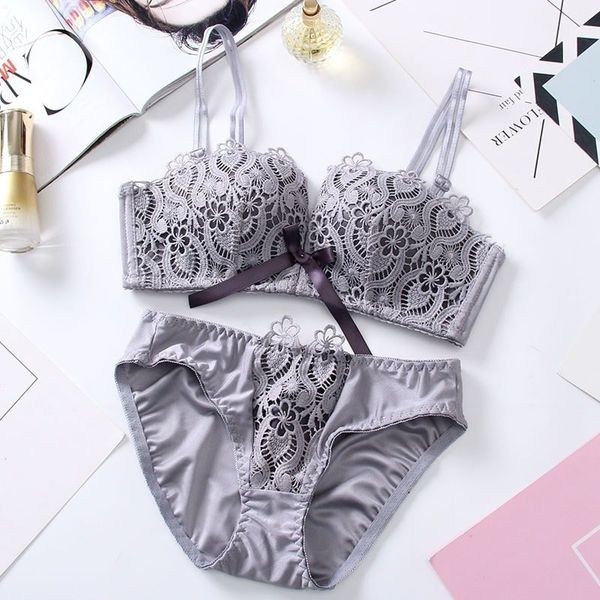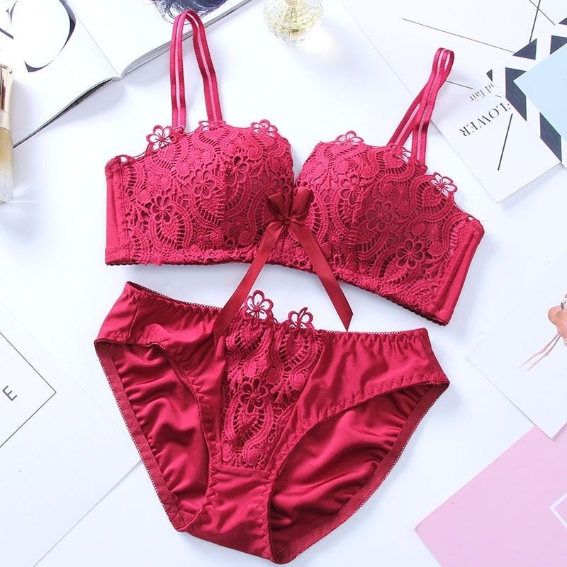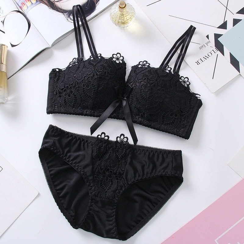 Without underwire bra set Girl’s double strap three-breasted lace bra set
