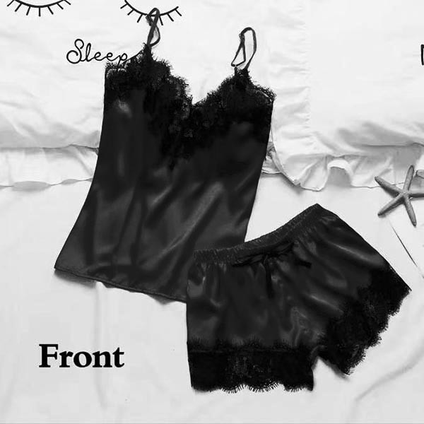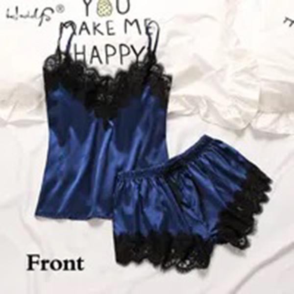 Women Elastic Sleepwear Set Adjustable Straps Bra with Shorts